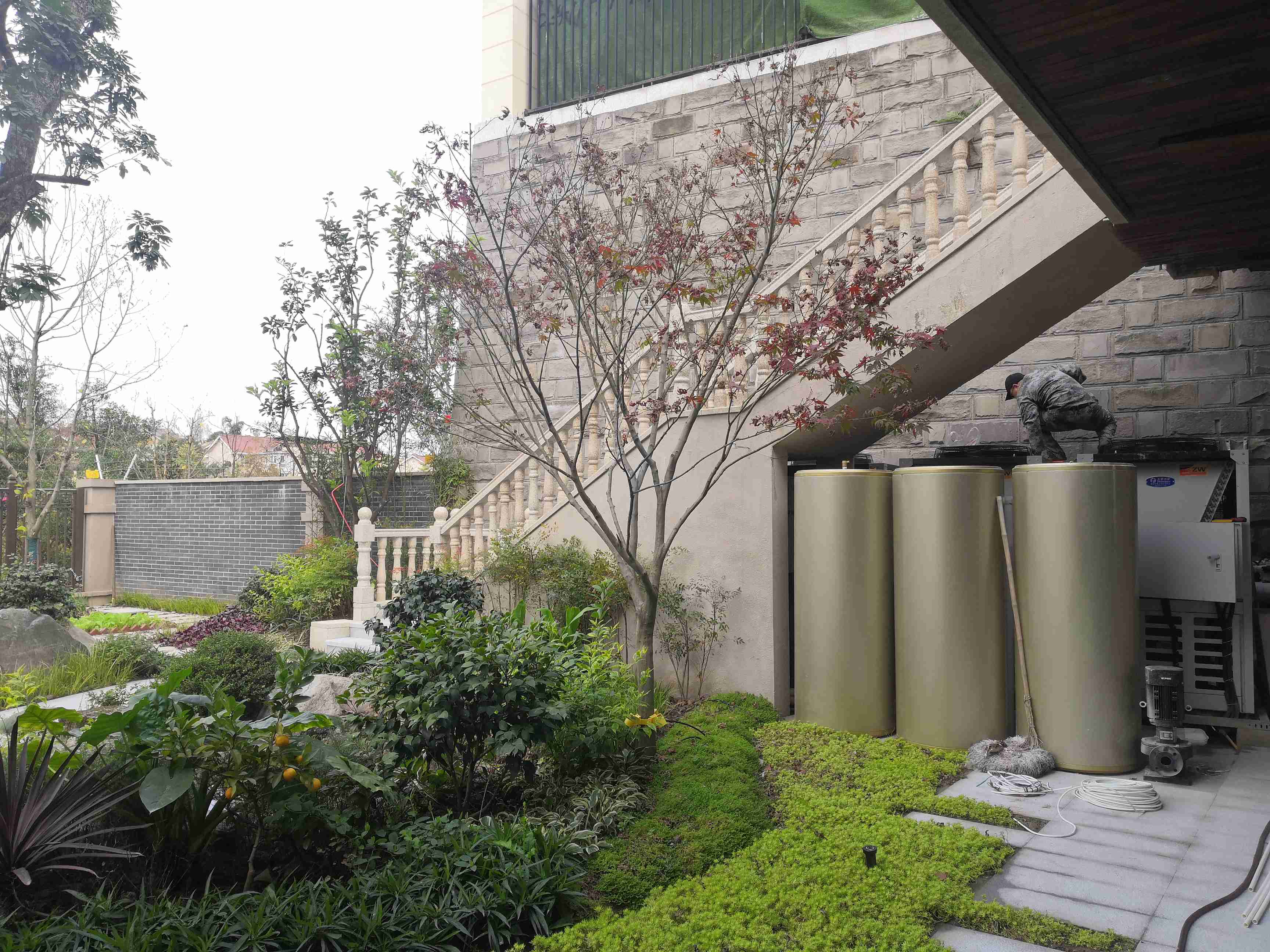 這座約500㎡的別墅采用了天舒五合一余熱回收空氣源熱泵,它有單采暖、制冷、熱水、制冷+熱水、熱水+采暖的強(qiáng)大功能,末端采用地暖+風(fēng)盤的組合。冬天,超低溫機(jī)組穩(wěn)定可靠,采暖與制熱水并行,效率更高。夏天,制冷產(chǎn)生的余熱回收用來制取熱水,這個熱水是完全免費(fèi)的!風(fēng)盤制冷,感受習(xí)習(xí)涼風(fēng)撫過臉龐,自帶回風(fēng)過濾效果。