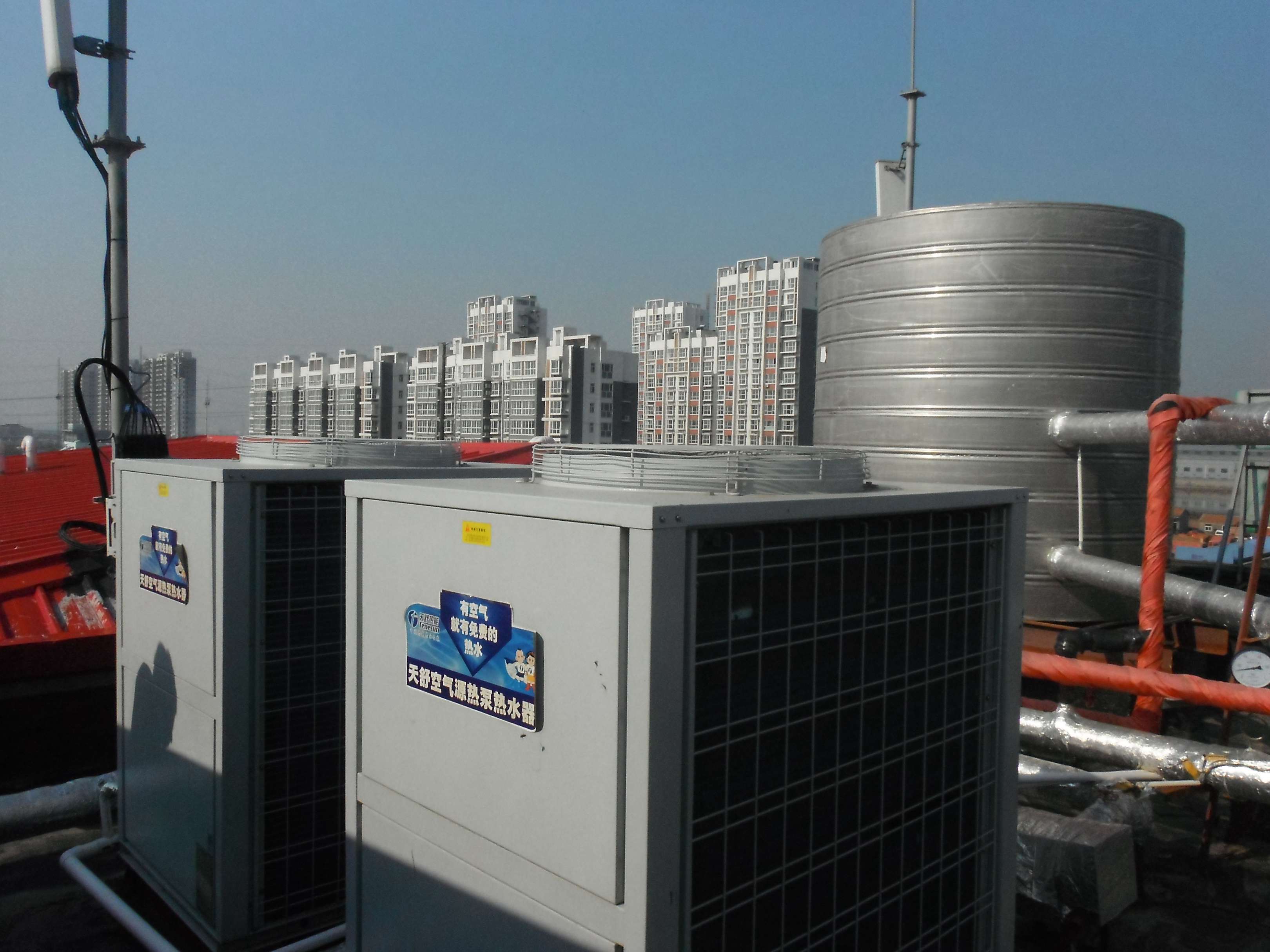 項(xiàng)目位于滄州市東部,瀕臨渤海灣,是一個(gè)新興的開發(fā)區(qū)。該酒店位于黃驊港中心,每天日用水量為20噸,使用天舒公司2臺(tái)超低溫機(jī)組。該工程完成時(shí)間距今約3個(gè)月左右,目前運(yùn)行穩(wěn)定,在酒店入住率將近滿負(fù)荷的情況下,在未使用電輔助加熱的情況下,也能很好地滿足酒店的熱水需求。