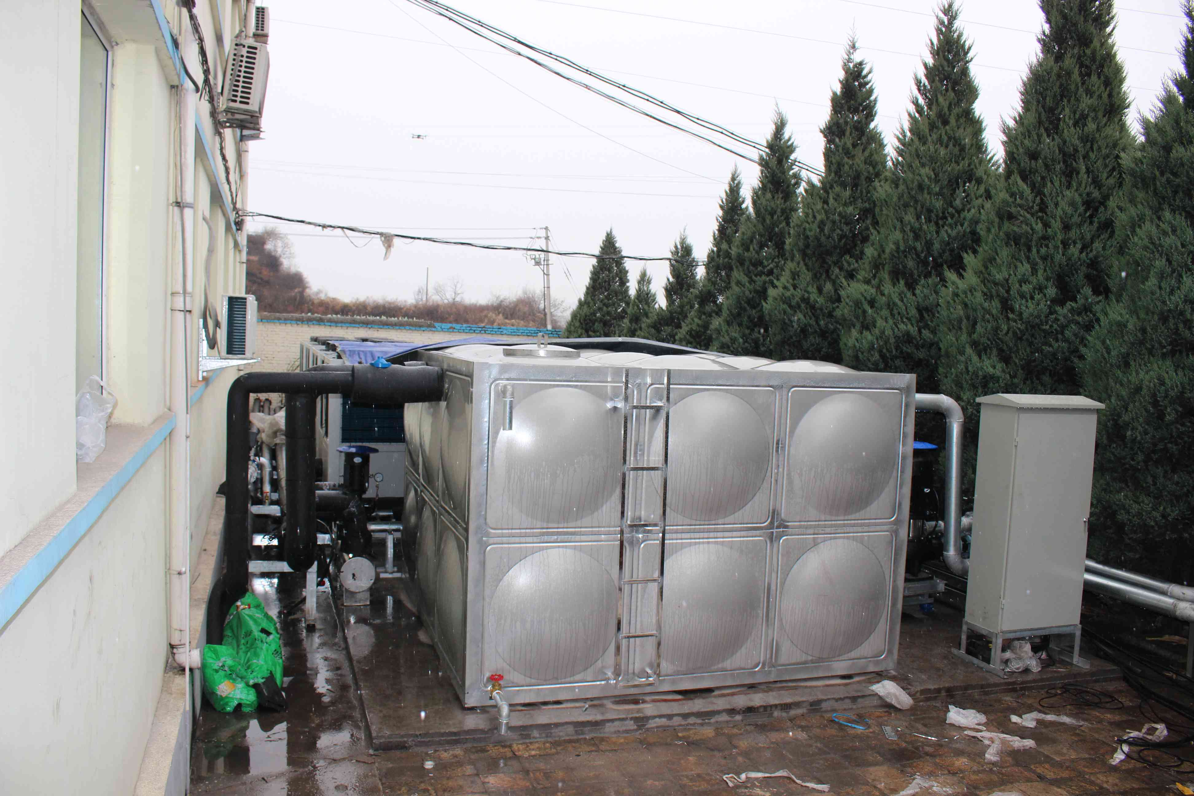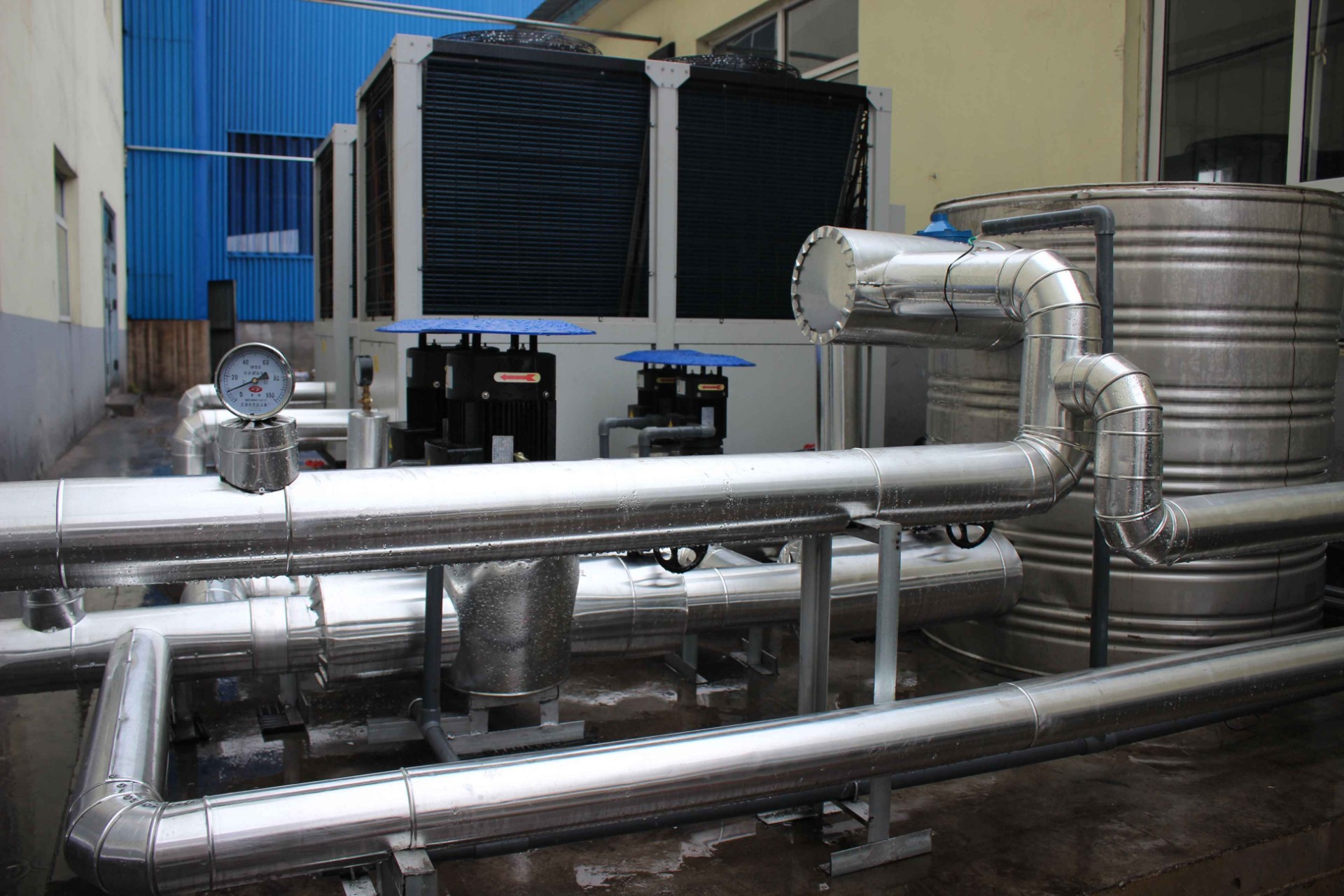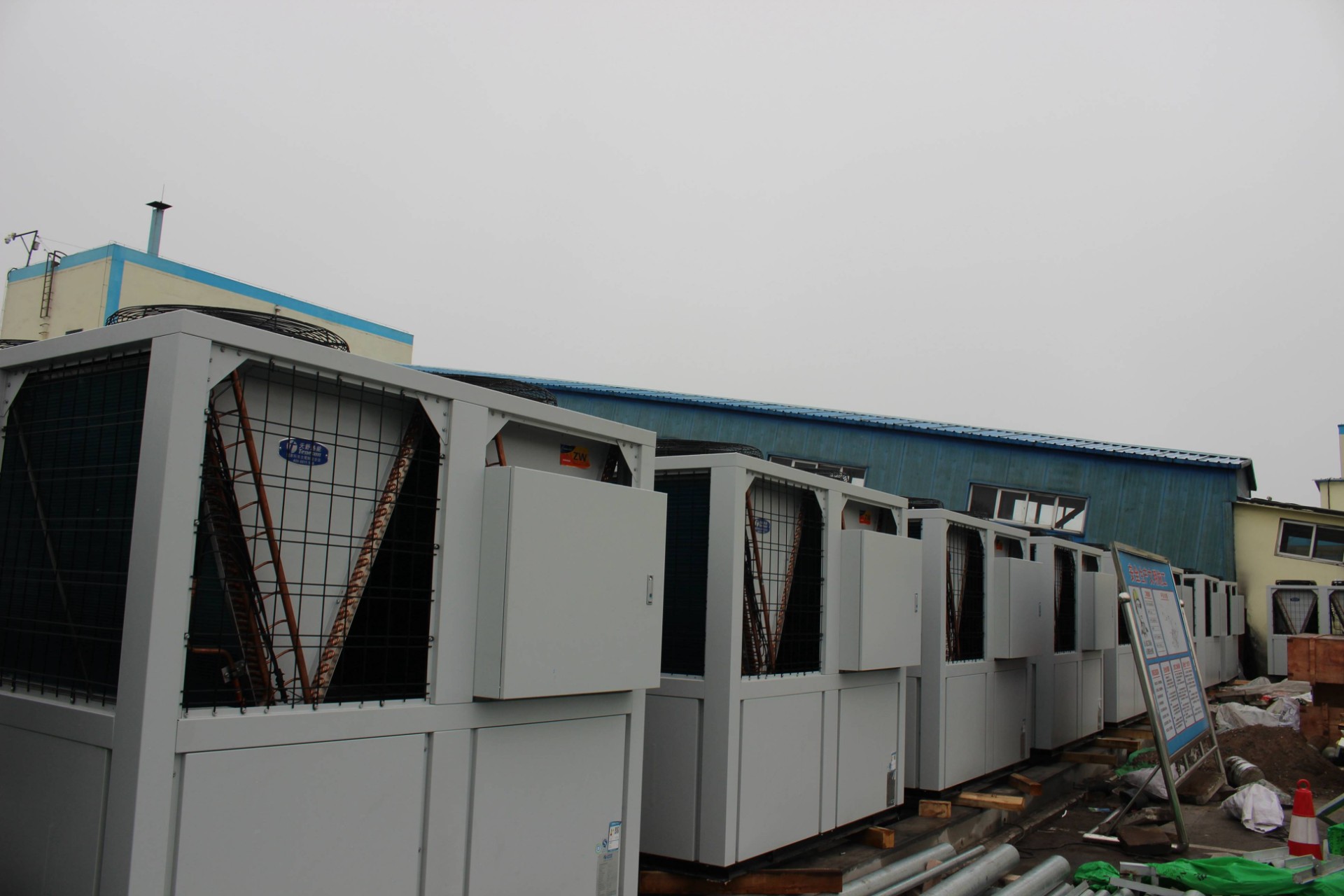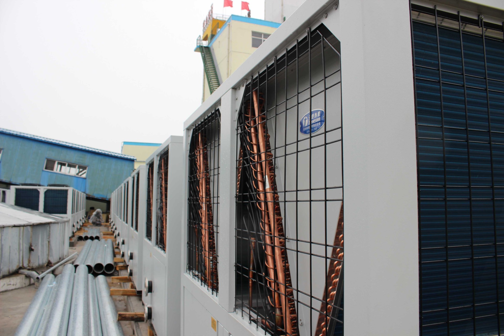 山西某地煤礦企業(yè)為響應(yīng)煤改電政策、改善員工的工作條件,配備了一套天舒空氣源熱泵系統(tǒng),共采用49臺(tái)48匹空氣源熱泵機(jī)組來(lái)替代原有的煤鍋爐系統(tǒng),主要用于礦井恒溫送風(fēng),主副兩個(gè)井口送風(fēng)量均為1500m3/分鐘,送風(fēng)溫度為5℃;此外該系統(tǒng)還為員工提供 24小時(shí)中央熱水,用水量約180噸/天;員工宿舍樓冬季采暖,末端采用暖氣片,采暖面積約為2萬(wàn)平米。相比普通的電加熱設(shè)備,天舒熱泵系統(tǒng)大大減少了運(yùn)行成本,該工程不僅改善了員工的工作條件,提高了工作效率,還為企業(yè)節(jié)約了開(kāi)支。