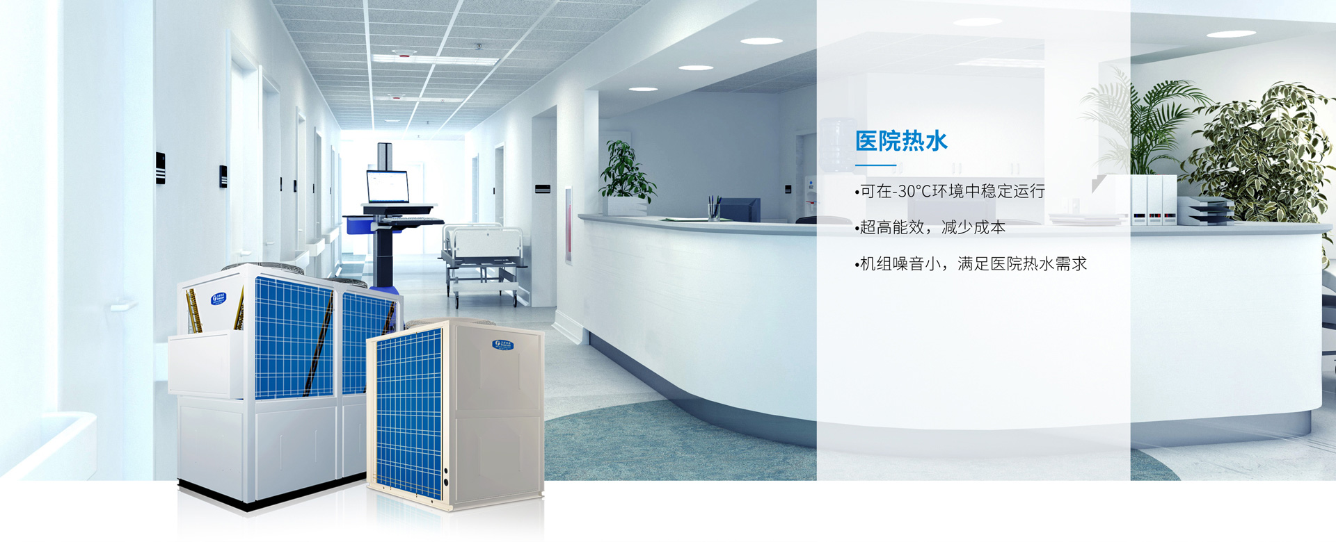 醫(yī)院熱水需要水溫恒定,機(jī)組噪音小等要求。
