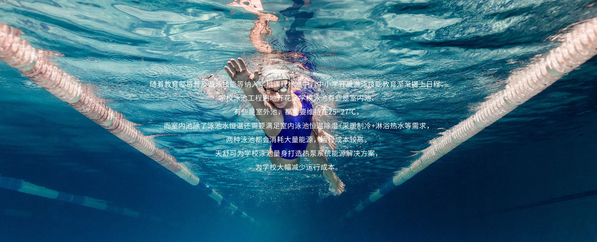 學(xué)校一直將學(xué)生的身心健康放在首位,天舒泳池?zé)岜孟到y(tǒng)維持游泳環(huán)境的溫濕度動態(tài)平衡,創(chuàng)造健康舒適的游泳環(huán)境。