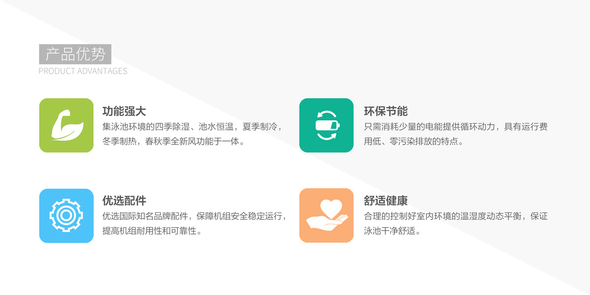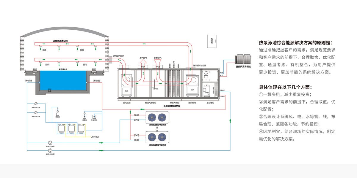 體育館需要舉行各類賽事,對觀眾和運(yùn)動員來說,館內(nèi)美觀舒適度尤為重要,天舒泳池?zé)岜孟到y(tǒng)維持游泳環(huán)境溫濕度動態(tài)平衡,創(chuàng)造健康舒適美觀的環(huán)境。